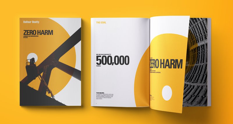 Balfour Beatty is committed to health and safety in every aspect of its work and nothing is more important than ensuring everyone returns home safely every day. This desire to strive to protect their workforce or anyone working in partnership required a strong branded initiative with a clear and distinctive name. Thus, Zero Harm was chosen and a very graphic brand mark focussing on the zero and sense of protection. The secondary message 'Make safety personal' supports this ongoing campaign.